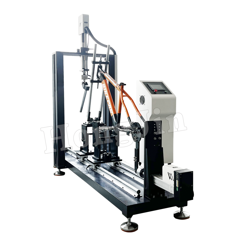 Mô phỏng quá trình đạp xe thực tế, tiến hành kiểm tra độ bền mỏi và phát hiện độ bền của cấu trúc khung. Máy thử nghiệm này được thiết kế theo tiêu chuẩn có liên quan. Hệ thống ứng dụng lực được điều khiển bởi cảm biến lực. Khi lực kiểm tra tác dụng lên khung đạt đến lực đã đặt, nó sẽ tự động quay về trạng thái đảo ngược. Số lượng bài kiểm tra có thể được đặt và nó sẽ tự động dừng khi đạt đến số lượng đã đặt.